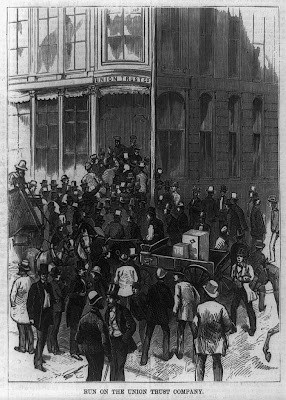 An engraving from the run on the Union Trust Company during the Panic of 1873.